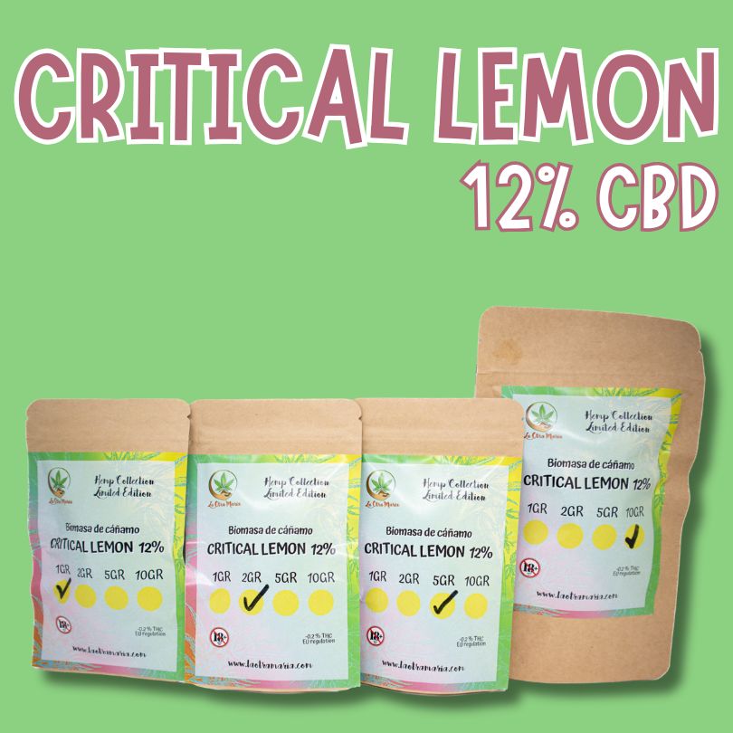 Biomasa de cáñamo CRITICAL LEMON 12% CBD Indoor – Concentración. Dolor y ansiedad bajo