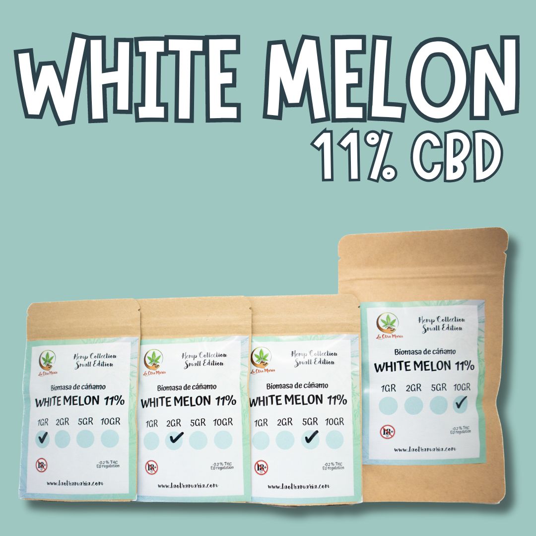 Biomasa de cáñamo WHITE MELON 11% CBD Greenhouse Small Buds – Dolor y ansiedad leves – Concentración