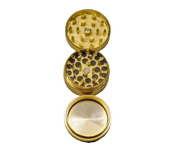 Grinder de 3 partes, con cierre magnético, tamizador con depósito para recoger el polen y dientes con forma de diamante para que no se te resista ni el más duro de los cogollos